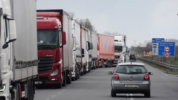 Prema informacijama Uprave granične policije, dobijenim u 5:15, kamioni na prelazu Bogojevo, takođe na izlazu, čekaju dva sata, na Horgošu sat i po, a na prelazima Kelebija i Šid jedan sat.