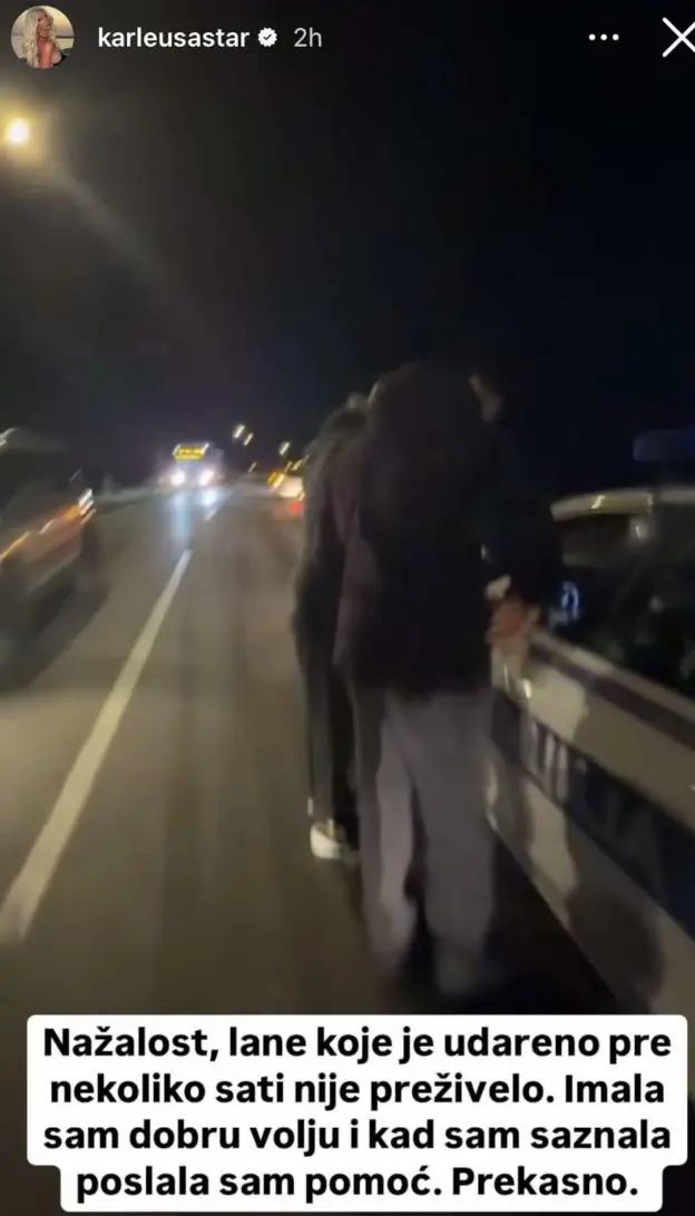 – E, sad se postavlja pitanje, zašto satima niko nije pomogao nesrećnoj životinji? Prolazite i gledate kako umire uz put? Snimate ga?! Da mi je javljeno na vreme možda bi imalo neku šansu. Ali dobri plemeniti ljudi koji volite životinje, gde ste? Pomozite. Dignite glas protiv lova i lovaca, protiv ubijanja i mučenja životinja bilo koje vrste, pomozite azilima, iznesite vodu i hranu životinjama na ulici u teškim uslovima, usvojite ne kupujte… Ne jedite meso, svakako nije dobro za vas, pokažite milost i razum, učite decu da živa bića nisu hrana već prijatelji koji imaju isto pravo na život kao i mi… Na godišnjem nivou sigurno sam najveći donator svih azila u Srbiji, ali moja pomoć, iako se meri u milionima dinara, je SMEŠNA ako sam usamljena u tome. Molim dobre ljude, pogotovo one koji imaju mogućnost da pomognu životinjama, svojim donacijama, svojim apelima, svojim primerom! Pozivam javne ličnosti da koriste svoju popularnost da promovišu milost prema životinjama… Okrenite se veštačkom krznu i eko koži, sad je to toliko dostupno… Nekad se osećam tako usamljeno u ovoj zemlji… Ismevaju me zbog ovih mojih reči… zbog moje borbe koju nazivaju zaludnom, a ja ne mogu da podnesem patnju životinja. Ne znam kako drugi to mogu da ignorišu, ali ja ne mogu… NISMO SVI MONSTRUMI IAKO SMO NAJGORA VRSTA NA OVOJ PLANETI! – dodala je Karleuša. stori / Izvor: Instagram printscreen/karleusastar