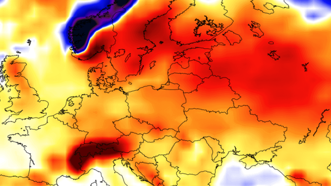 UKMO model pokazuje nešto drukčiju prognozu od ECMWF-a. Prikazuje zonu visokog tlaka sa središtem iznad zapadne Europe i signal područja niskog tlaka iznad dalekog sjevernog Atlantika. Zona visokog tlaka proteže se i prema istoku, pokrivajući veći dio Europe. Temperaturna prognoza pokazuje uglavnom toplije uvjete od normalnih u većem dijelu kontinenta, osobito u sjevernim i sjeveroistočnim regijama.