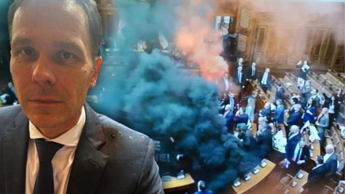 Tuča i šok-bombe u Skupštini, opozicija pravi haosi Foto: RTS Printscreen