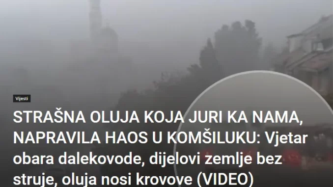 STRAŠNA OLUJA KOJA JURI KA NAMA, NAPRAVILA HAOS U KOMŠILUKU: Vjetar obara dalekovode, dijelovi zemlje bez struje, oluja nosi krovove (VIDEO)