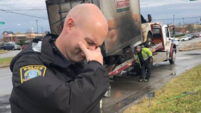 Kamion proizvođača krofni gori, poslastice više nisu za jelo i to jako rastužuje policajce. Kada cijeli kamion krofni više nije upotrebljiv, može vam izmamiti suze na oči.