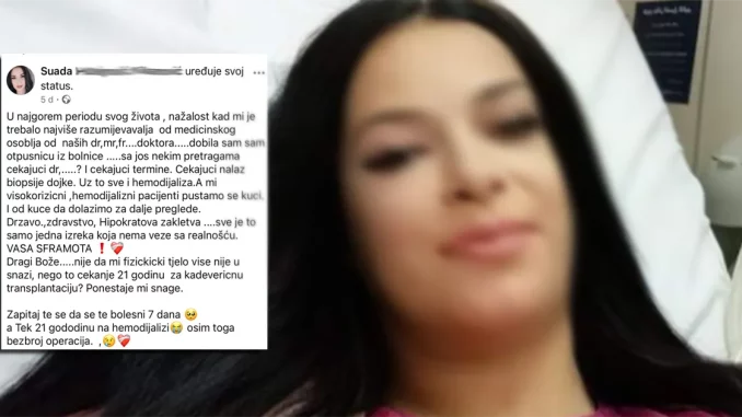 “Čekajući nalaz biopsije dojke, uz to sve i hemodijaliza. A mi, visokorizični hemodijalizni pacijenti puštamo se kući. I od kuće da dolazimo za dalje preglede. Državo, zdravstvo, Hipokratova zakletva…. sve je to samo jedna izreka koja nema veze sa realnošću. Vaša sramota”, poručila je u potresnoj objavi.