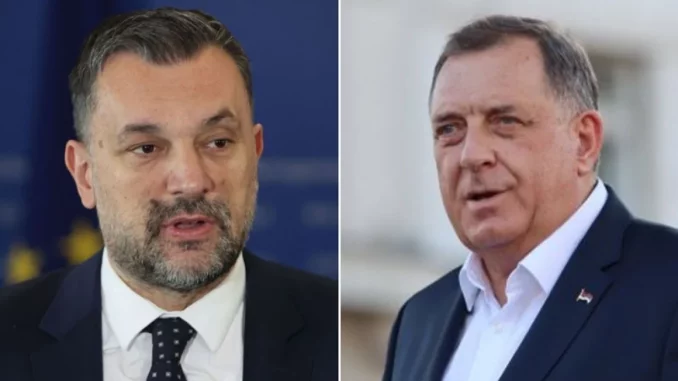Predsjednik RS-a Milorad Dodik sinoć je izjavio kako je imao dogovor sa liderom NiP-a i ministrom vanjskih poslova BiH Elmedinom Konakovićem u vezi sa predajom Tužilaštvu BiH. Dodik je tom prilikom kazao kako je dogovor podrazumijevao da Konaković “jedan dan o tome galami i da poslije šuti”.