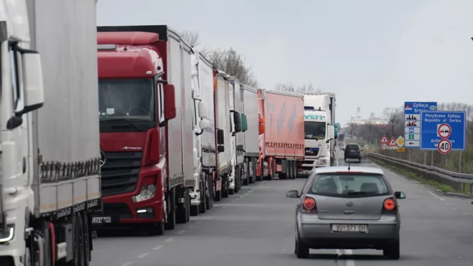 Na graničnim prelazima Kelebija i Bezdan, na izlazu iz zemlje, teretna vozila se zadržavaju 120 minuta, na Batrovcima 360 minuta, a na Šidu 420 minuta.