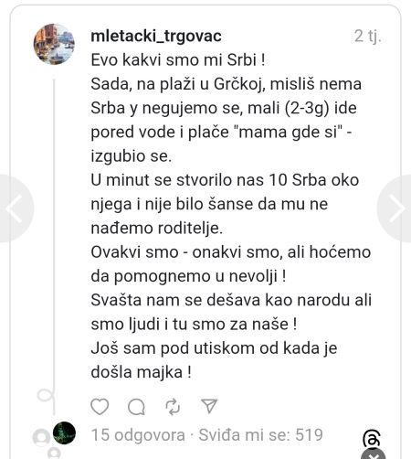 – Svaka čast! Prošle godine sam bio na Halkidikiju i video koliko se Srbi dobro drže kada je u pitanju briga o deci. U Londonu ne smem da ispustim dete iz vida ni na pet sekundi – napisao je jedan korisnik
