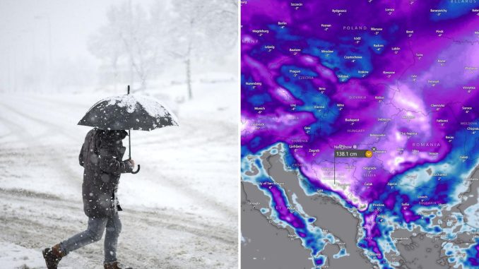 Kako se ledeni zrak sudara s toplijim i vlažnim zrakom Mediterana, očekuje se niz snažnih snježnih oluja koje će se kretati Balkanom te središnjom i istočnom Europom, uz prijetnju velikim snježnim pokrivačem, mećavama i ozbiljnim poremećajima u prometu.