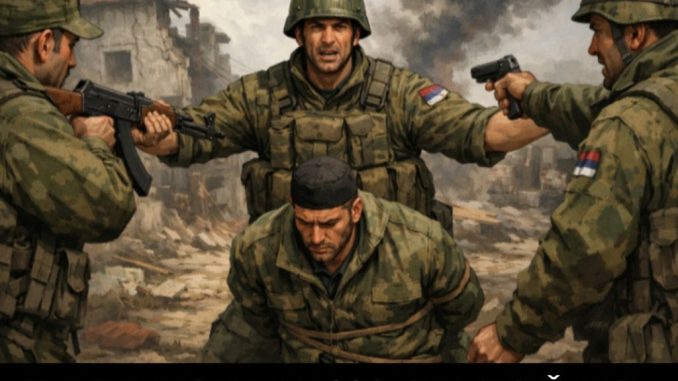 Dobijam jedan udarac sa leđa i padam, ali tu počinje komešanje i svađa među njima, jedan od vojnika galameći govori “Nismo se borili i zarobljavali ga da bi se ovdje vi nad njim iživljavali, pi…. li vam materina. Razmjenićemo ga za nekog od naših.