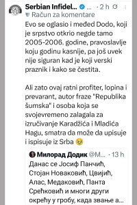 Ne stišavaju se reakcije na društvenim mrežama nakon istupa Milorada Dodika, predsjednika SNSD-a, koji je brutalno izvrijeđao srbijanskog akademika Dušana Teodorovića. Teodorović je prethodno Srbe iz Republike Srpske nazvao varvarima — što je pokrenulo lavinu reakcija.